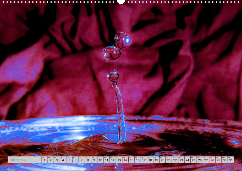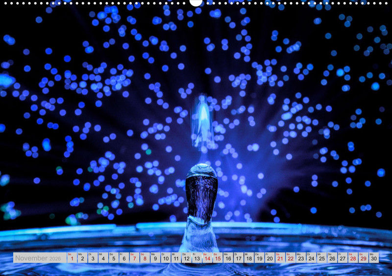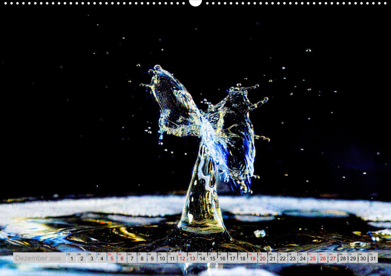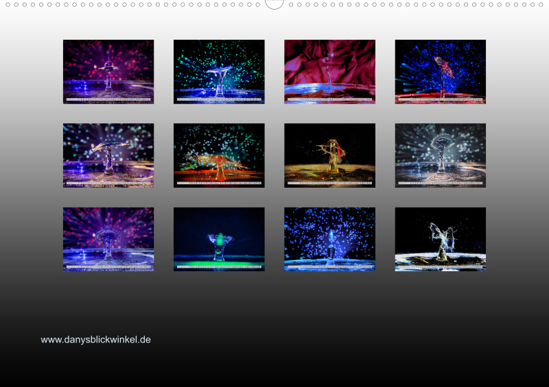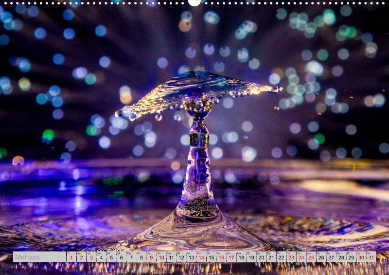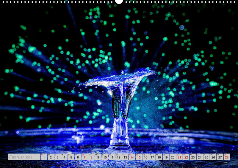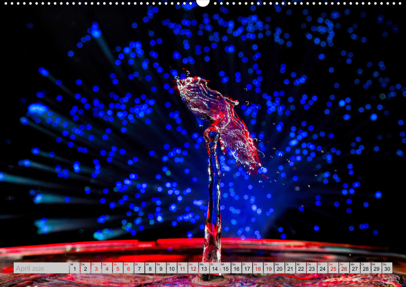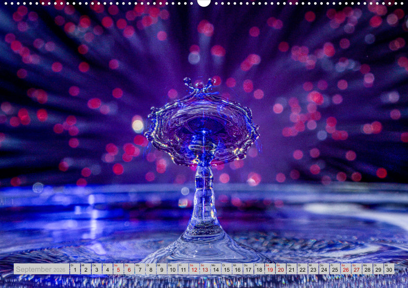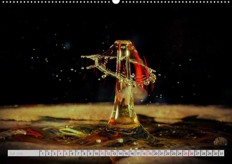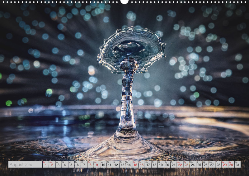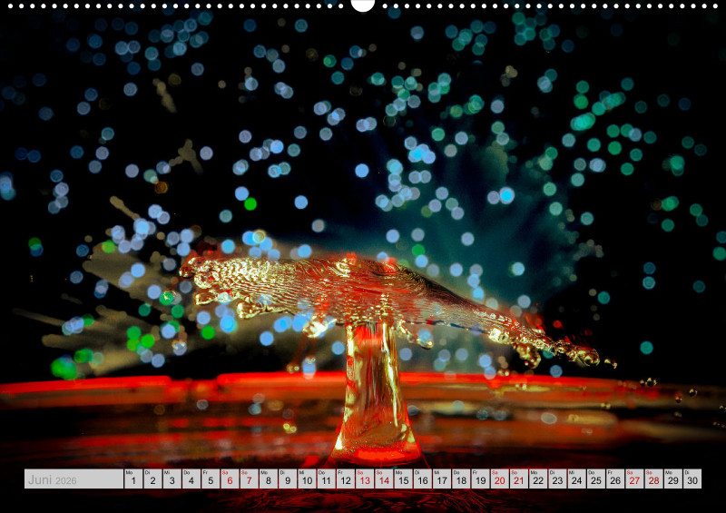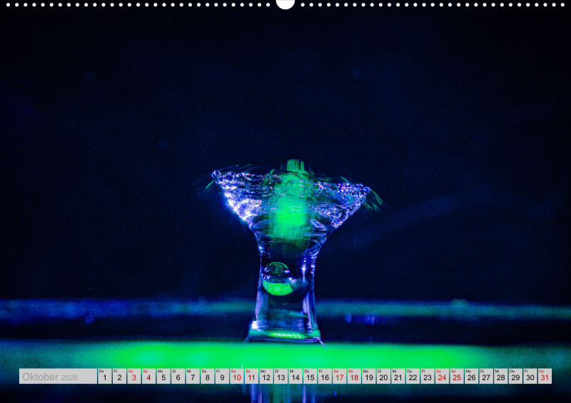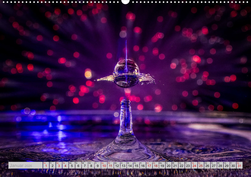 Wie faszinierend es sein kann die Kollision von Tropfen in einer bestimmten Millisekunde in Ruhe anschauen zu können. Das ganze mit etwas Licht verfeinert ist für jeden einzelnen Monat ein Hingucker.