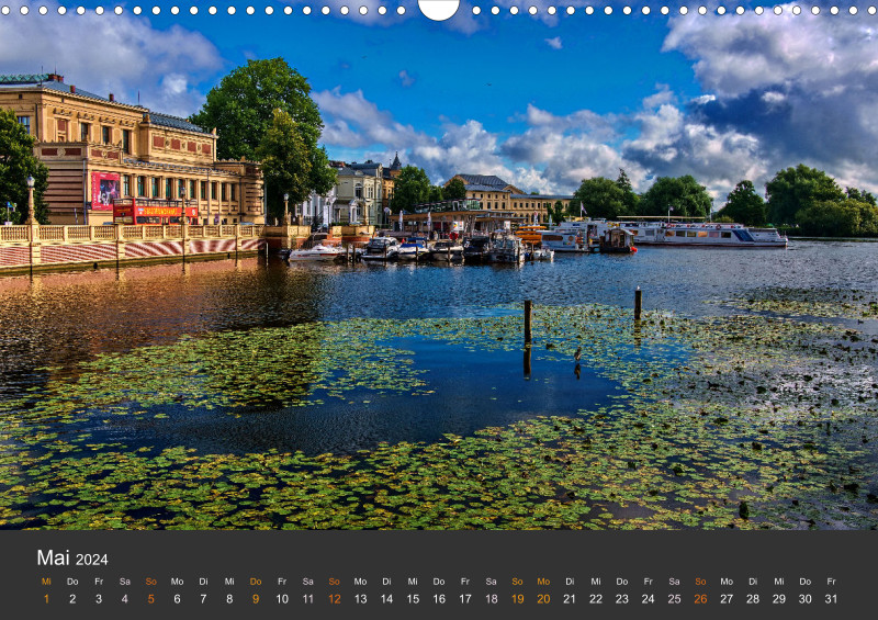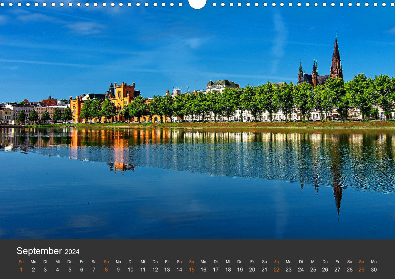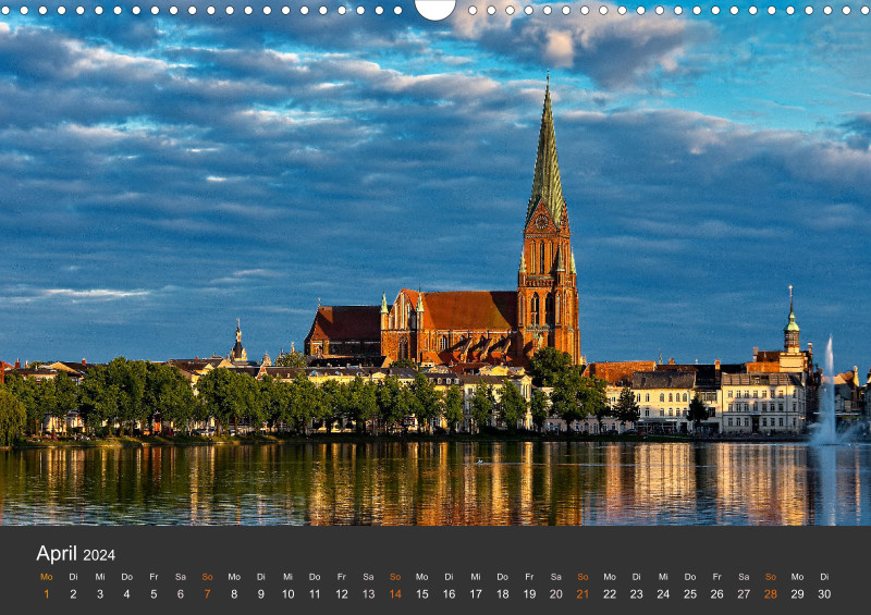 Schwerin ist die Landeshauptstadt des Bundeslandes Mecklenburg Vorpommern und durch das Schweriner Schloss und seine vielen Seen deutschlandweit bekannt. Hier können Sie unseren aktuellen Kalender für das Jahr 2024 von Schwerin erwerben. Ideal für größere Räume wie große Flure, Wohnzimmer, Büroräume und Co.