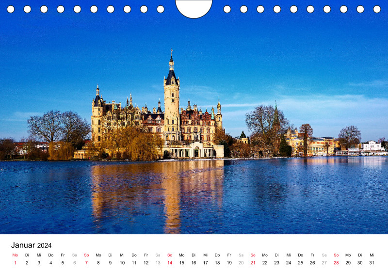 Eine Reise durch die Jahreszeiten im Monatskalender von Schwerin. Holen Sie sich das Schweriner Schloss, den Schweriner See und die schöne Umgebung nach hause. Der Monatskalende im Format A5 eignet sich gut für Wände mit wenig Platz. Überraschen Sie doch Ihre Besucher schon im Flur mit einem aktuellen Kalenderblatt des jeweiligen Monats.