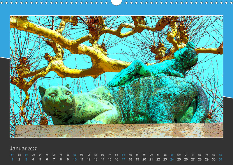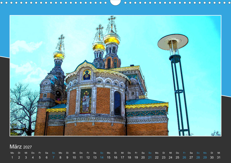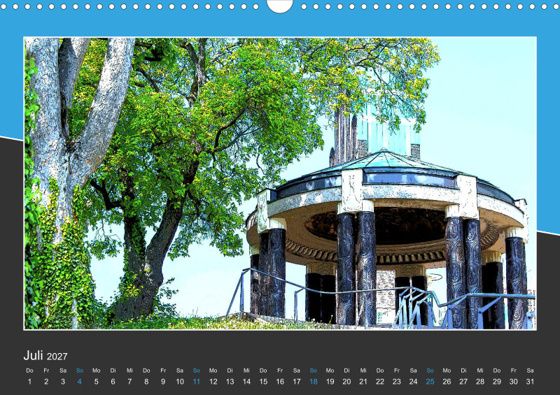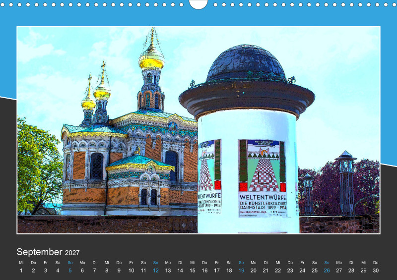 Kulturell hat die Stadt Darmstadt viel zu bieten. Der Park der Orangerie vermittelt im Sommer ein südliches Flair. Das Jugendstil-Ensemble „Mathildenhöhe Darmstadt“ bestehend aus Skulpturen, Gärten, mit Platanenhain, außergewöhnlicher Architektur und vielfältiger Kunst erinnert an interessante Zeiten. Im Park der Rosenhöhe findet man das Rosarium, ein Teehaus und Mausoleen. Dies ist ein kleiner Einblick in die Geschichte der Wissenschaftsstadt. Dieser Kalender ist für Kulturbegeisterte, Interessenten für Kunst und Geschichte, Jugendstilfreunde, Fans von Natur und Gartenkunst bestens geeignet.