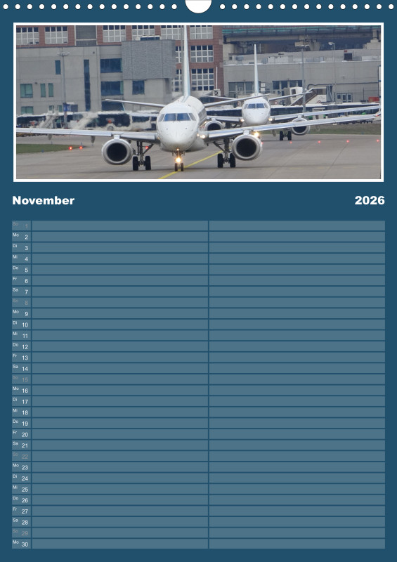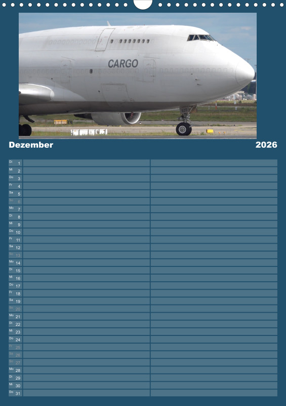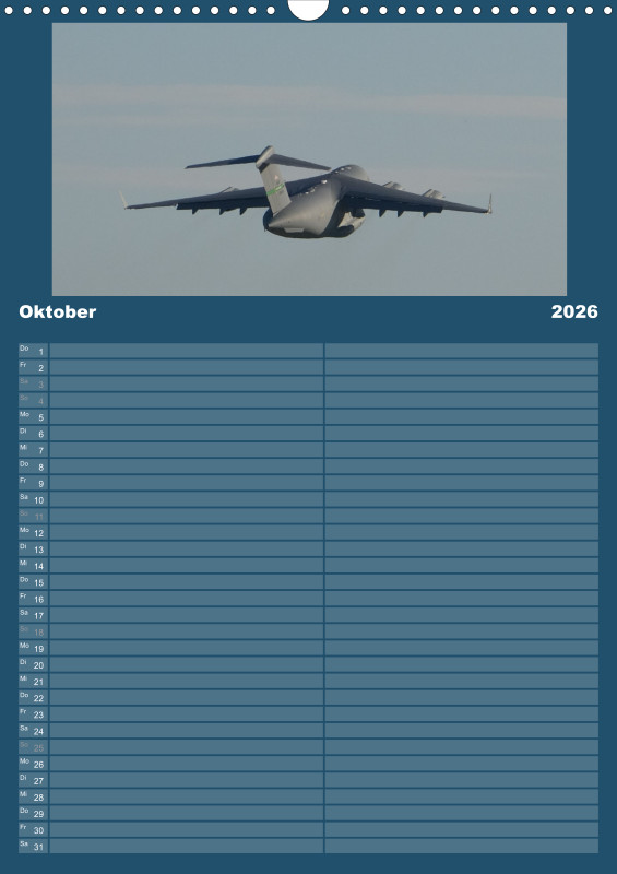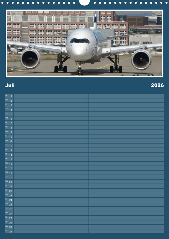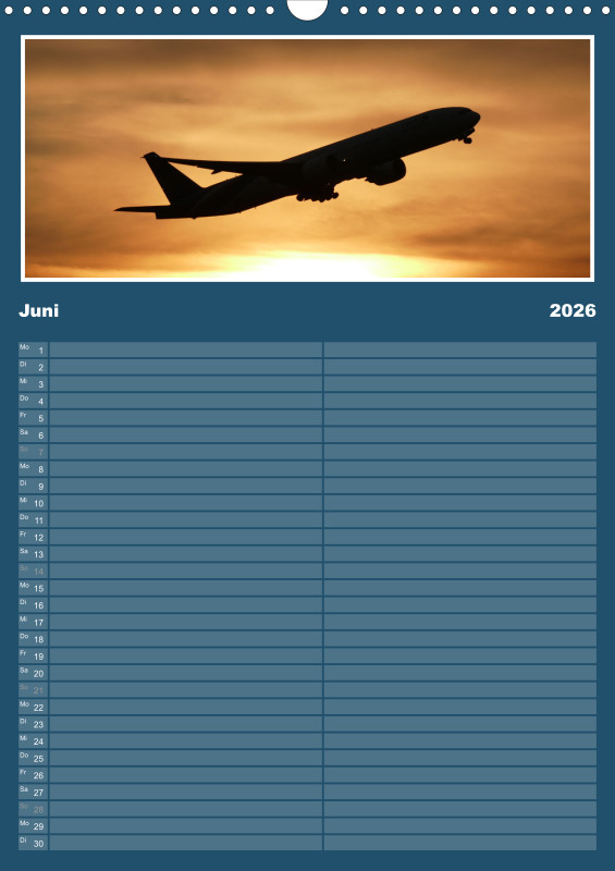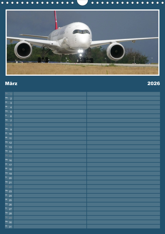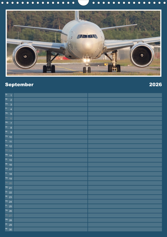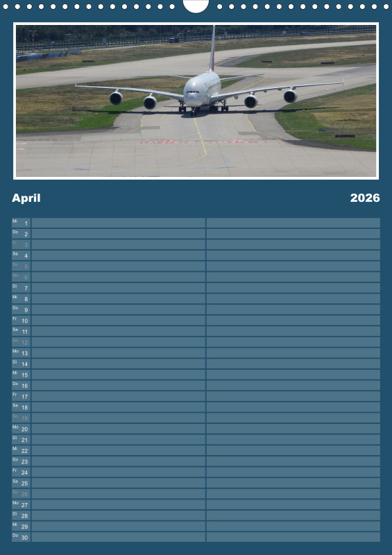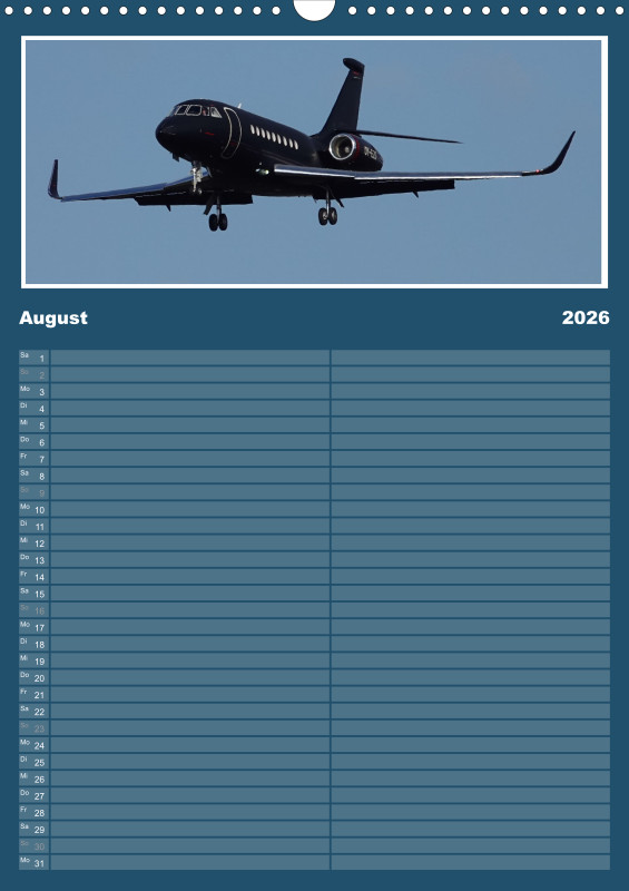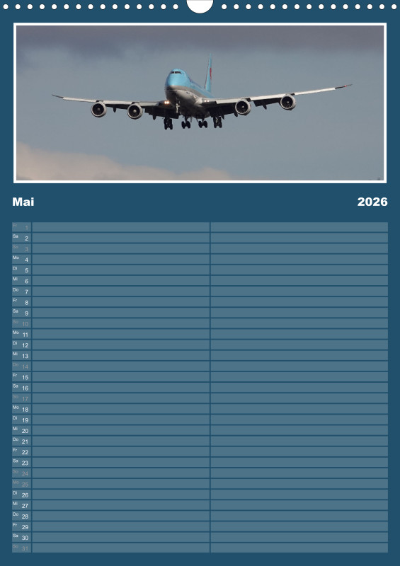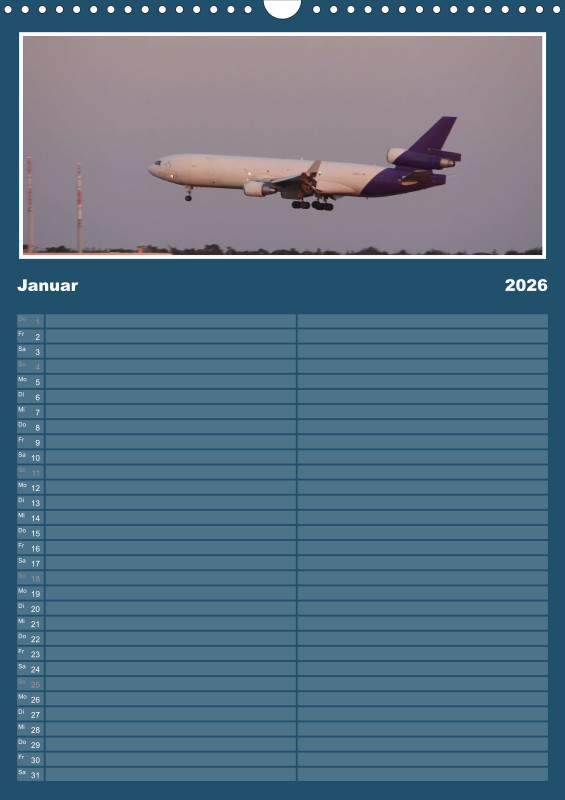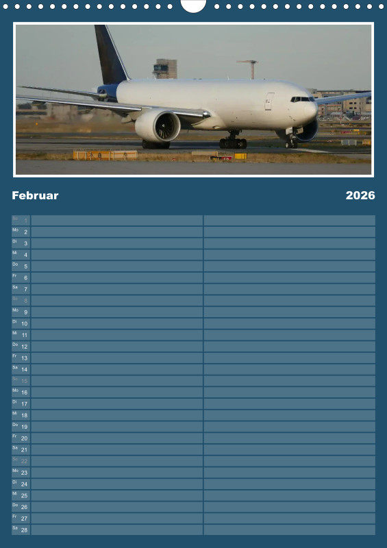 ✈️ Flugzeug Familienplaner 2026 – mit exklusiven Aufnahmen aus meiner eigenen Flugzeugfotografie Plane dein Jahr 2026 mit einzigartigen Flugzeugmomenten! Dieser Familienplaner im großzügigen A3-Hochformat bietet nicht nur viel Platz für Termine, sondern begeistert Monat für Monat mit eindrucksvollen Bildern aus der Welt der Luftfahrt – fotografiert und zusammengestellt mit Leidenschaft. Details zum Familienplaner: Format: A3 (Hochformat) Gedruckt im hochwertigen Digitaldruckverfahren Papier: 250 g/m² Kunstdruckpapier, holzfrei, classicmatt Mattglanzbeschichtung für brillante Bildwirkung Wire-O-Bindung (schwarz) mit stabilem Drahtaufhänger Alle Seiten auf edlem, gestrichenem Bilderdruckpapier Ob als Geschenk für Luftfahrtfans oder als praktischer Begleiter für die ganze Familie – dieser Kalender vereint Organisation und Leidenschaft für Flugzeuge in einem besonderen Produkt.