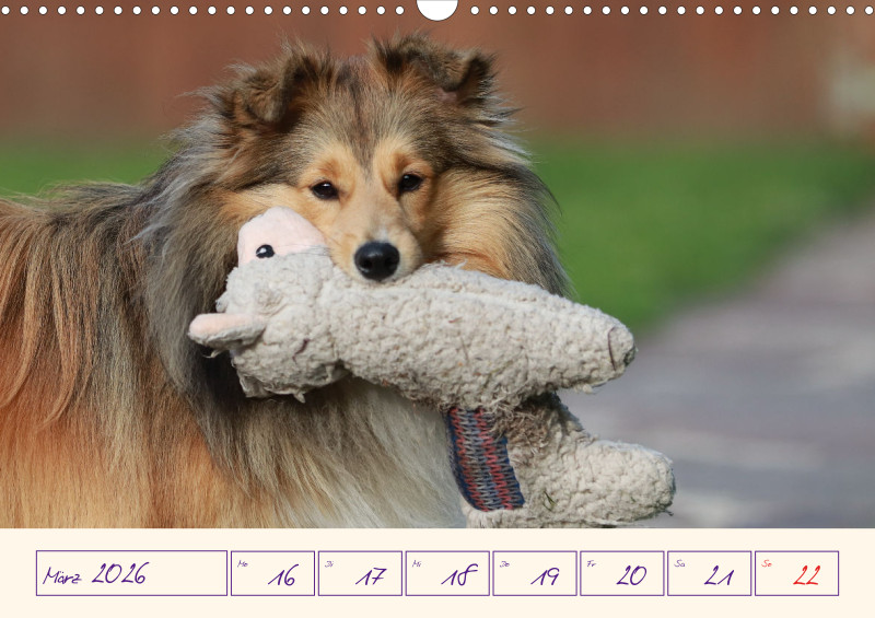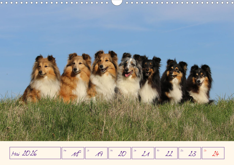 Dieser Wochenkalender wird sie durch das gesamte Jahr begleiten und somit jede Woche mit einem anderen Sheltie-Bild erfreuen.