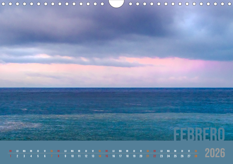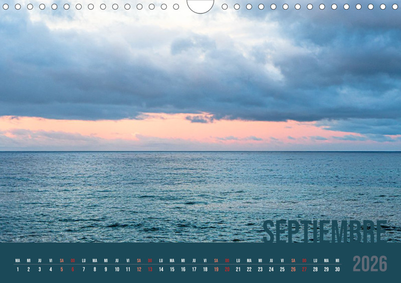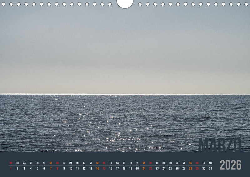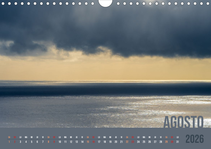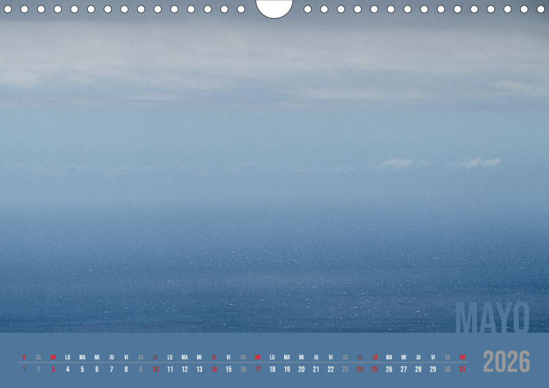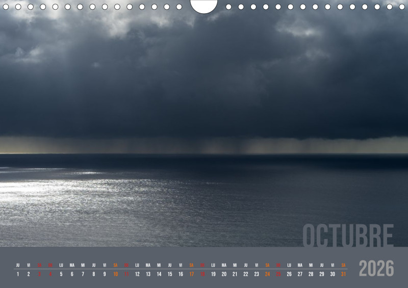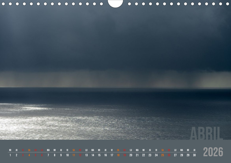 Mar abierto es un calendario fotográfico que muestra el mar en toda su amplitud y profundidad, como símbolo del anhelo, la libertad y lo desconocido. Cada mes abre una nueva ventana al mar, a veces tranquilo y claro, otras veces tormentoso y misterioso. Las imágenes invitan a enfrentarse al horizonte abierto con curiosidad, valentía y el corazón abierto.