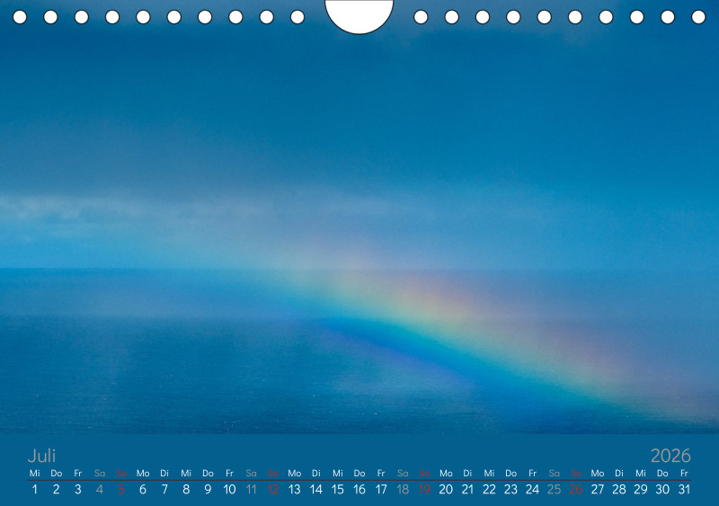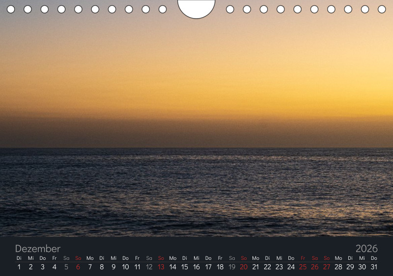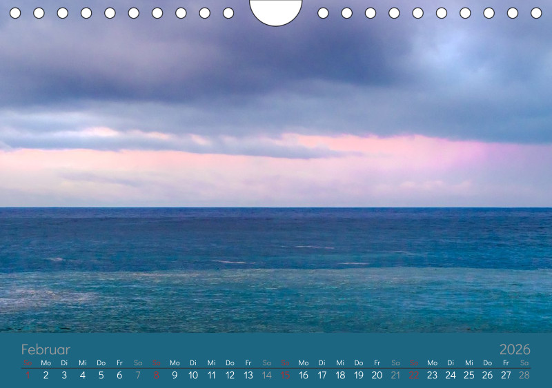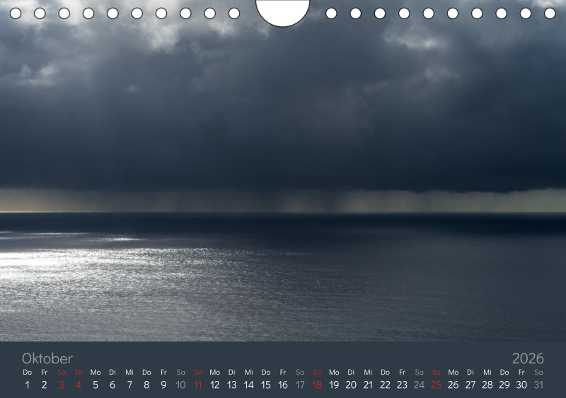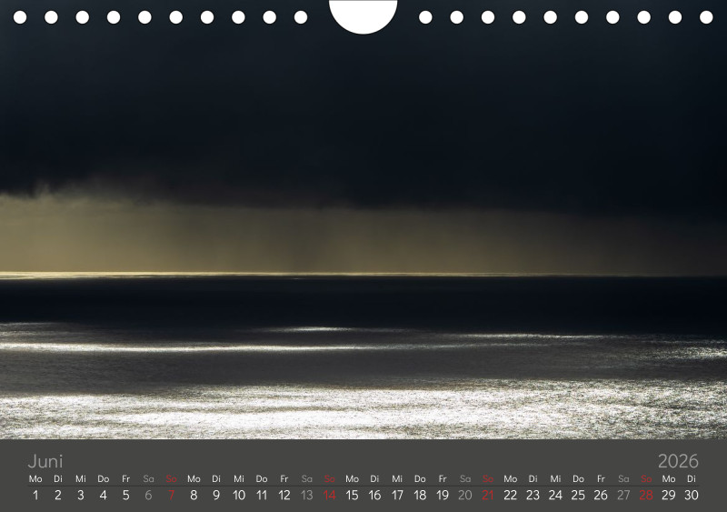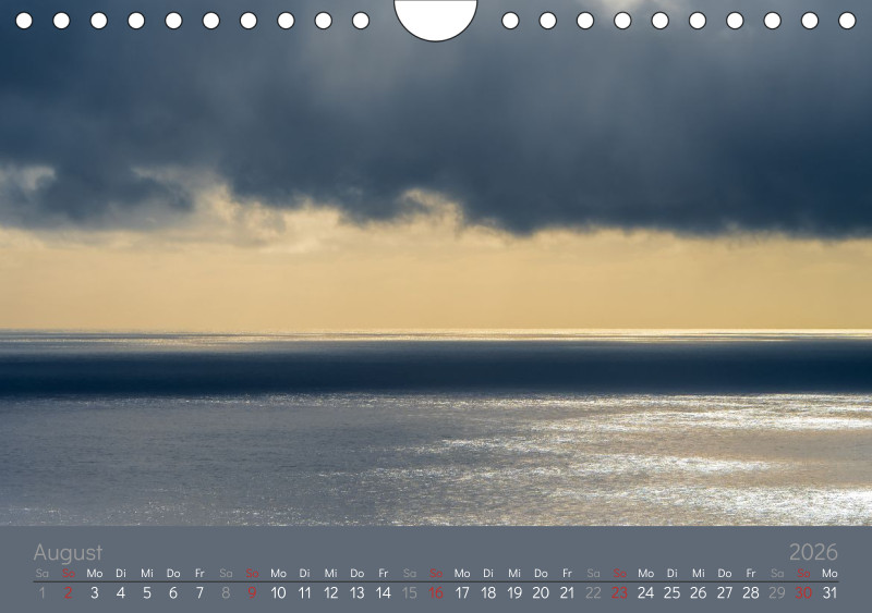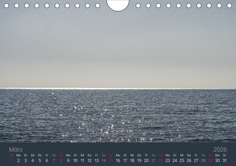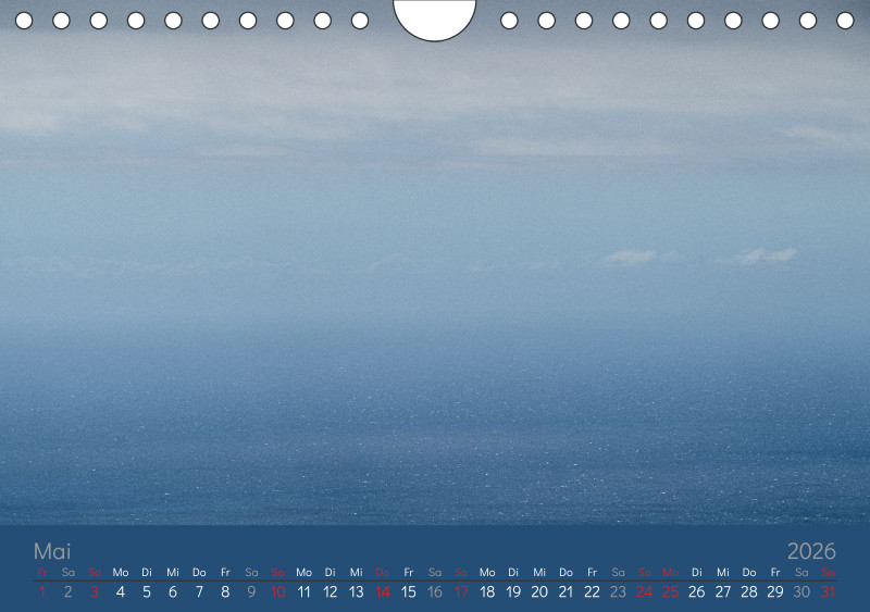 „OFFEN.WEIT.MEER“ ist ein fotografischer Kalender, der das Meer in all seiner Weite und Tiefe zeigt – als Sinnbild für Sehnsucht, Freiheit und das Unbekannte. Jeder Monat öffnet ein neues Fenster zur See: mal ruhig und klar, mal stürmisch und geheimnisvoll. Die Bilder laden dazu ein, sich dem offenen Horizont zu stellen – mit Neugier, Mut und einem offenen Herzen.