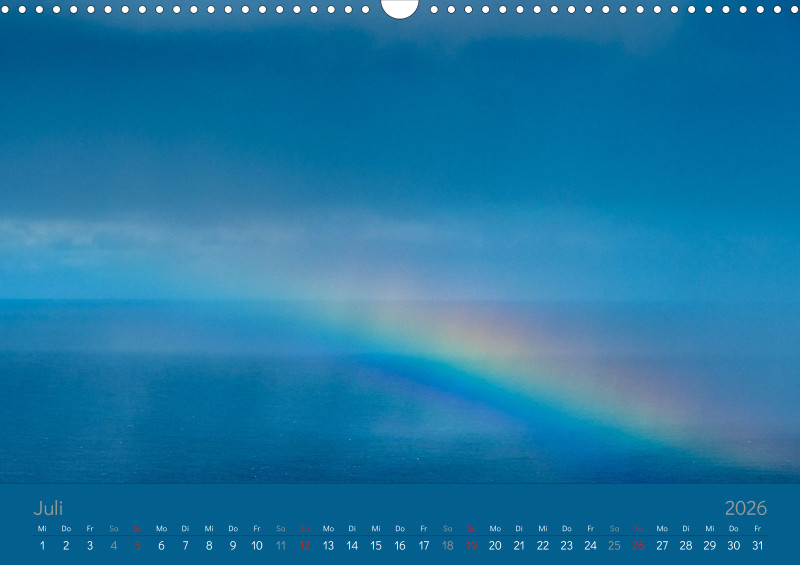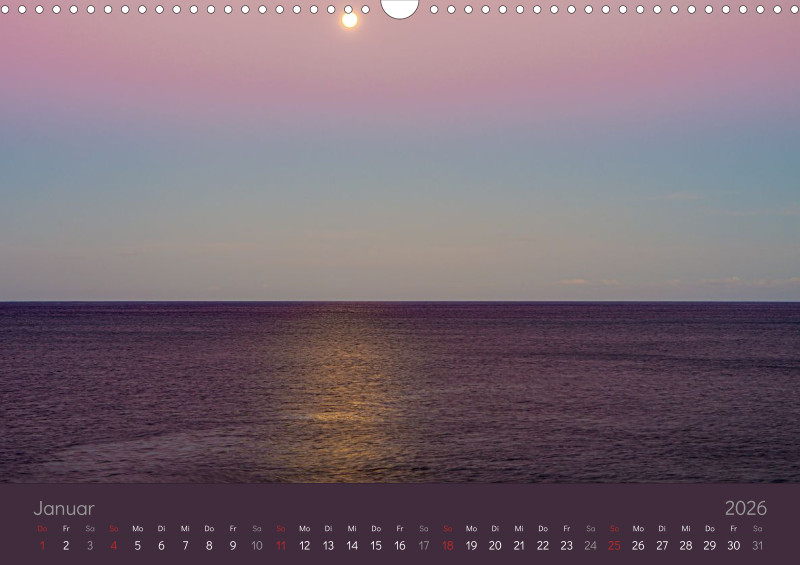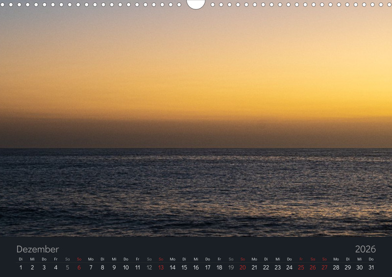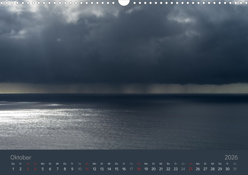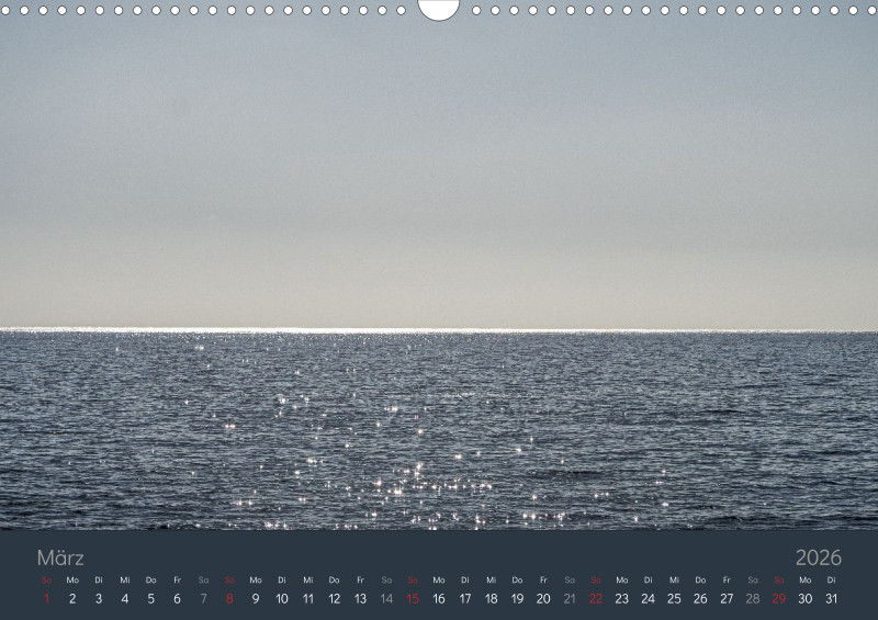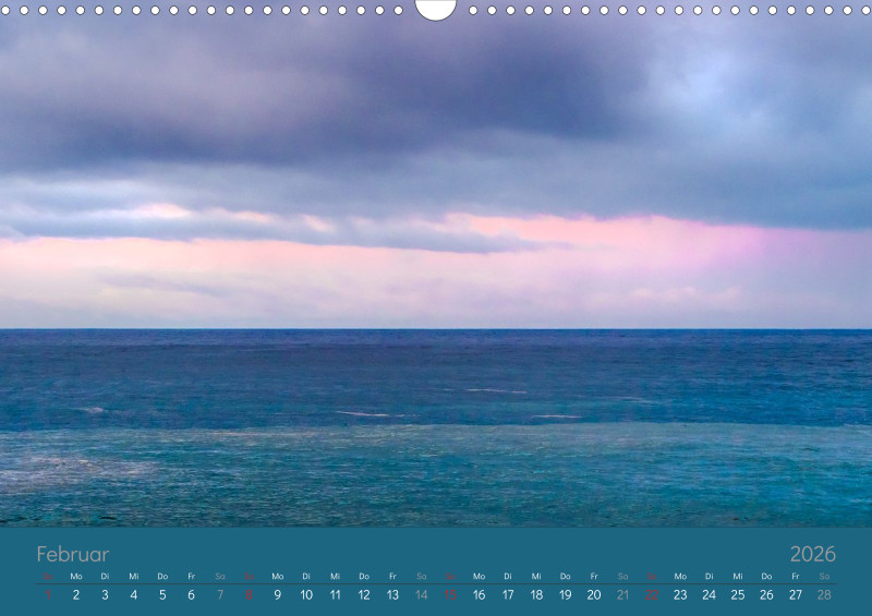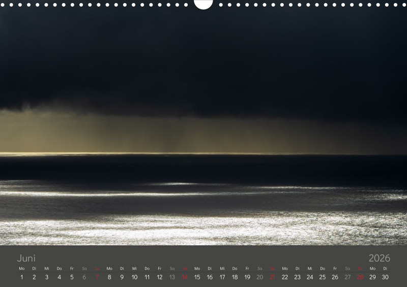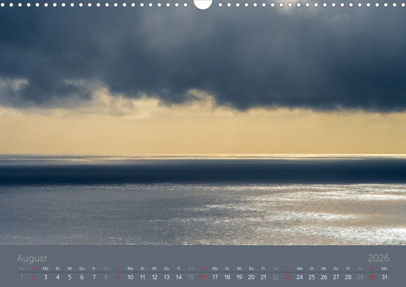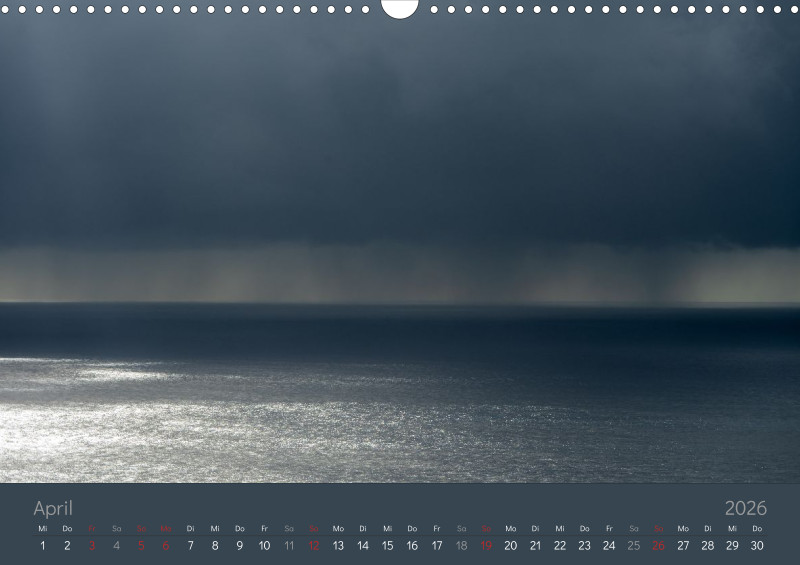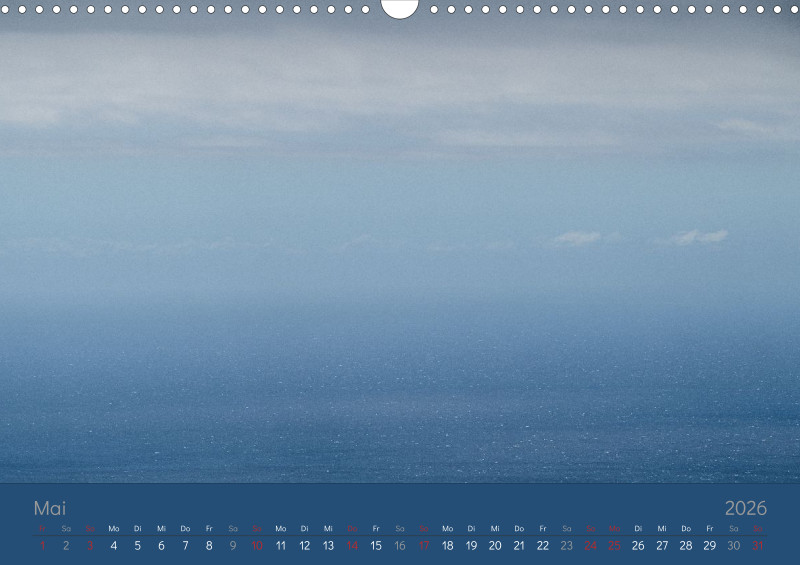 „OFFEN.WEIT.MEER“ ist ein fotografischer Kalender, der das Meer in all seiner Weite und Tiefe zeigt – als Sinnbild für Sehnsucht, Freiheit und das Unbekannte. Jeder Monat öffnet ein neues Fenster zur See: mal ruhig und klar, mal stürmisch und geheimnisvoll. Die Bilder laden dazu ein, sich dem offenen Horizont zu stellen – mit Neugier, Mut und einem offenen Herzen.