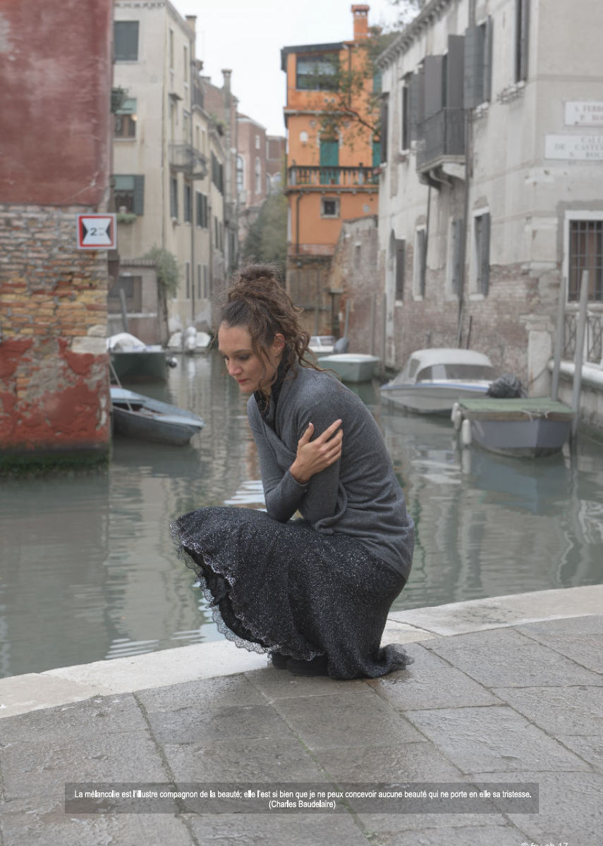 Posterbuch A4 „Nah am Wasser gebaut!“. Zitate in vier Sprachen beschreiben die Melancholie in verschiedenen Facetten und Kulturen. Venedig ist die passende Kulisse für die Personen, die diesem Gefühl Ausdruck geben.