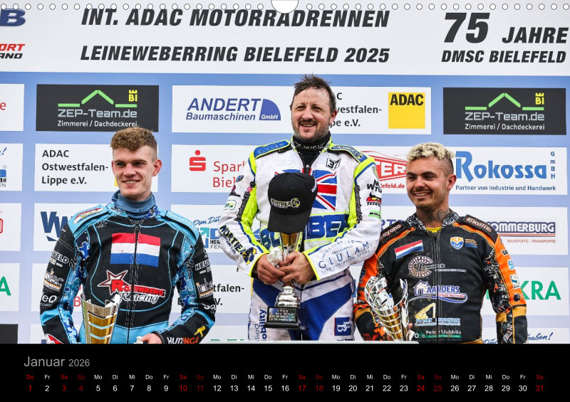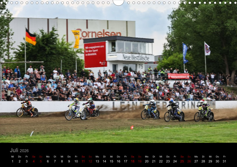 Fotokalender für 2026 mit Motiven vom Grasbahnrennen auf dem Leineweberring in Bielefeld.