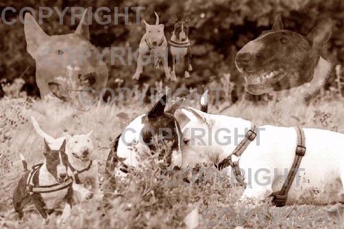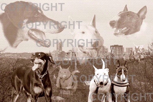 Bulli-Dobermann Collage sepia