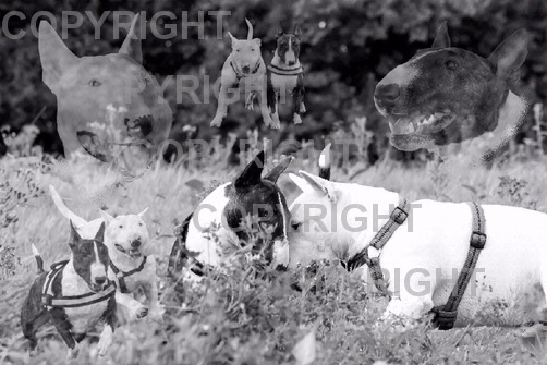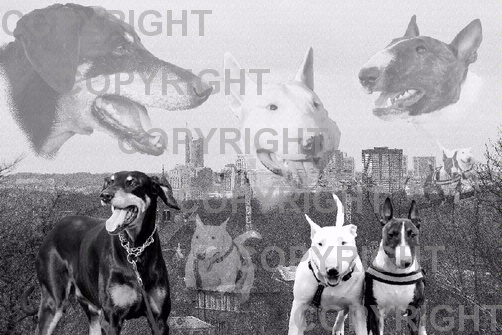 Bulli-Dobermann Collage schwarz-weiß