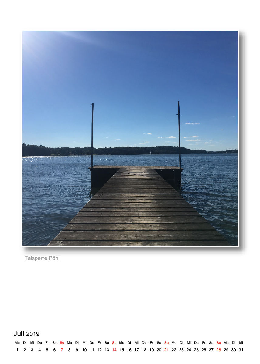 - In diesem Kalender für das Jahr 2019 finden Sie 13 Impressionen aus dem Vogtland auf 14 Seiten - Zu den abgebildeten Ausflugszielen finden Sie jeweils Beiträge im Reise-Blog www.Vogtland-Zauber.de - Deckblatt: Umgebindehaus, Treuen - Januar: Talsperre Pöhl im Winter - Februar: Weltcup-Schanze der Vogtland-Arena, Klingenthal - März: Pavillon auf dem Theresienstein, Hof - April: Osterbrunnen auf dem Osterpfad Sachsen-Thüringen, Berga - Mai: Schafbrücke im Kemnitzbachtal, Burgsteingebiet Nähe Geilsdorf - Juni: Hermann-Vogel-Haus, Krebes - Juli: Talsperre Pöhl im Sommer - August: Haus Schulenburg von Henry van der Velde, Gera - September: Historischer Wagen von 1928, Plauen - Oktober: Aussichtsturm auf dem Wirtsberg, Landwüst - November: Wasserschloss, Geilsdorf - Dezember: 1. Vogtländischer Bismarckturm auf dem Oberen Berg, Markneukirchen