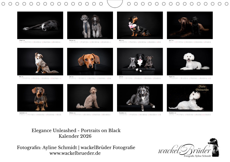 Elegance Unleashed 2026 – Wenn Hunde zu Kunst werden. Tauche ein in eine Welt, in der Eleganz, Ausdruckskraft und pure Schönheit aufeinandertreffen. Der Elegance Unleashed – Portraits on Black Kalender 2026 zeigt Hunde so, wie man sie selten sieht: kraftvoll, edel und geheimnisvoll inszeniert vor tiefschwarzem Hintergrund. Jedes Bild wirkt wie ein kunstvolles Studio-Porträt – reduziert auf das Wesentliche, voller Charakter und beeindruckender Präsenz. Die perfekte Kombination aus stilvoller Fotografie und der einzigartigen Ausstrahlung verschiedener Hunderassen. Deine Highlights im Überblick: (1) 12 außergewöhnliche, hochauflösende Hundeporträts auf edlem Schwarz (2) Elegantes A4-Format – ideal für Wohnräume, Büro oder Studio (3) Hochwertiger Druck für brillante Details und intensive Kontraste (4) Perfekt als Geschenk für Hundefans, Kunstliebhaber und alle, die das Besondere suchen. Verleihe deinem Jahr 2026 einen Hauch von Luxus und Ästhetik – mit einem Kalender, der mehr ist als eine Wanddeko: eine Hommage an die Eleganz unserer treuesten Begleiter.