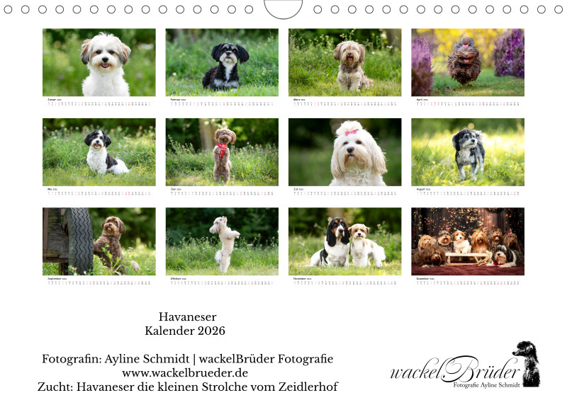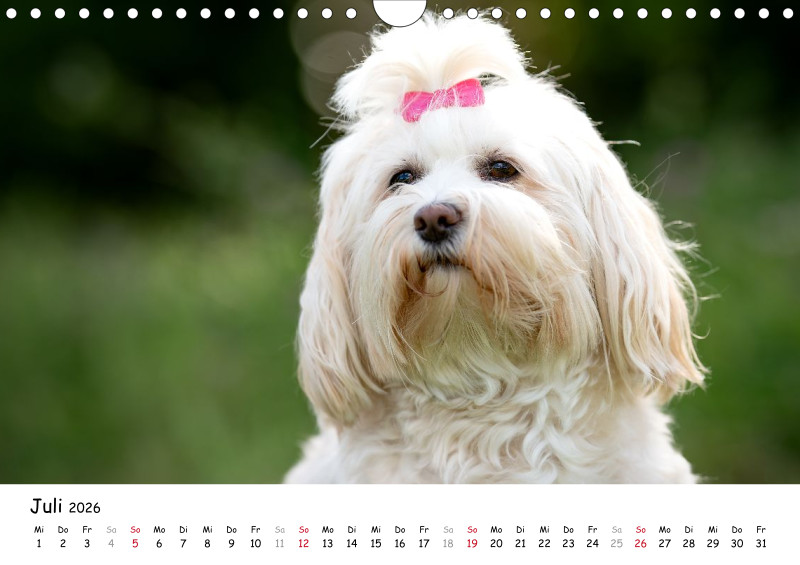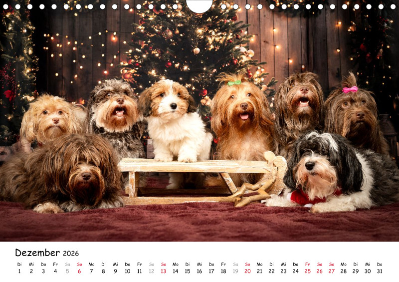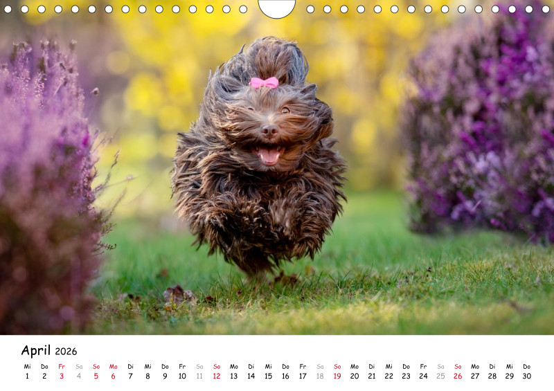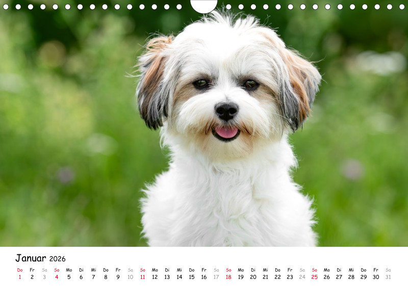 Havaneser 2026 – Ein Jahr voller flauschiger Freude! Wer kann diesem Blick widerstehen? Der Havaneser – Zuckersüße Hunde Kalender 2026 bringt jeden Monat ein neues „Awwww“-Moment an deine Wand. Mit ihrem seidigen Fell, den fröhlichen Knopfaugen und ihrem charmanten Wesen verzaubern Havaneser einfach jeden – und genau diese Magie fängt dieser Kalender perfekt ein. Ob verspielt, neugierig, gemütlich oder einfach nur herzerwärmend süß: Jede der zwölf Aufnahmen wurde liebevoll ausgewählt, um das bezaubernde Temperament dieser kleinen Charmeure zu zeigen. Das macht diesen Kalender so besonders: (1) 12 zuckersüße Havaneser-Porträts – detailreich und hochwertig gedruckt (2) A4-Format: perfekt für Küche, Büro, Wohnzimmer oder als Geschenk (3) Ideal für Havaneser-Fans und alle, die sich täglich ein Lächeln schenken möchten. Lass dich 2026 jeden Tag von der liebenswerten Art dieser kleinen Fellnasen begleiten – ein Kalender, der garantiert das Herz erwärmt!