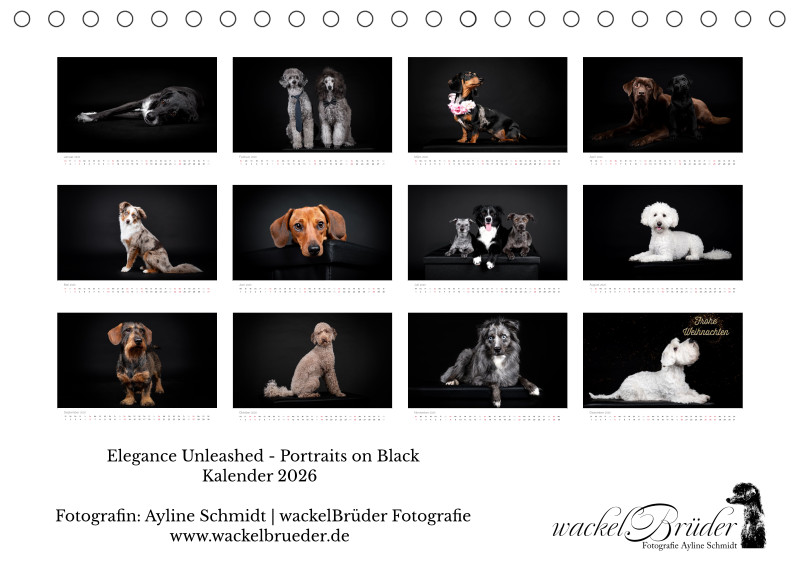 Elegance Unleashed 2026 – Wenn Hunde zu Kunst werden. Tauche ein in eine Welt, in der Eleganz, Ausdruckskraft und pure Schönheit aufeinandertreffen. Der Elegance Unleashed – Portraits on Black Kalender 2026 zeigt Hunde so, wie man sie selten sieht: kraftvoll, edel und geheimnisvoll inszeniert vor tiefschwarzem Hintergrund. Jedes Bild wirkt wie ein kunstvolles Studio-Porträt – reduziert auf das Wesentliche, voller Charakter und beeindruckender Präsenz. Die perfekte Kombination aus stilvoller Fotografie und der einzigartigen Ausstrahlung verschiedener Hunderassen. Deine Highlights im Überblick: (1) 12 außergewöhnliche, hochauflösende Hundeporträts auf edlem Schwarz (2) Elegantes A4-Format – ideal für Wohnräume, Büro oder Studio (3) Hochwertiger Druck für brillante Details und intensive Kontraste (4) Perfekt als Geschenk für Hundefans, Kunstliebhaber und alle, die das Besondere suchen. Verleihe deinem Jahr 2026 einen Hauch von Luxus und Ästhetik – mit einem Kalender, der mehr ist als eine Wanddeko: eine Hommage an die Eleganz unserer treuesten Begleiter.